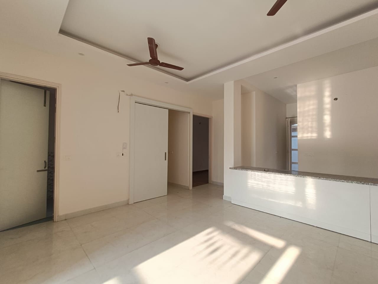 The interiors feature premium vitrified flooring, false ceiling lights, and custom woodwork that add both warmth and character. The modular kitchen is fitted with top-quality hardware and chimneys, while the attached washrooms boast branded sanitary fittings and modern tiles.